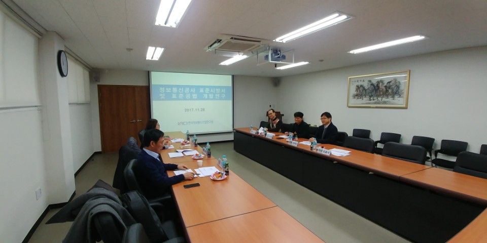 [연구원소식] 2017년도 제3차 정보통신공사 공사비산정기준 전문위원회 회의 개최가. 일 자 : 2017. 12. 1(금) 나. 장 소 : 서울역 KTX1 회의실 다. 참 석 : 전문위원회 위원 11명 참석 라. 회의 주요내용 o 2017년도 하반기 표준품셈 제개정(안) 심의 o 전차회의록 확인 및 주요업무보고 o 기타토의 등 ※ 의결사항 o 2017년도 하반기 정보통신공사 표준품셈 제개정 심의(안) – 제정 14개항, 개정 78개항