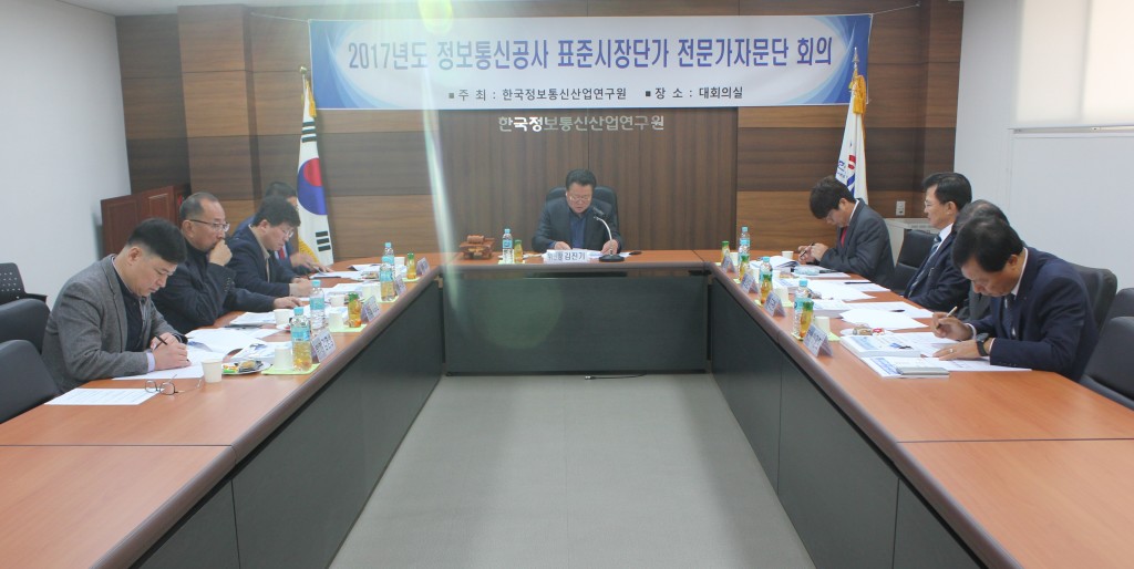 [연구원소식] 2017년도 제2차 정보통신공사 표준시장단가 전문가자문단 회의 개최가. 일 자 : 2017. 11. 9(목) 나. 장 소 : 연구원 1층 대회의실 다. 참 석 : 전문가자문단 위원 9명 참석 라. 회의 주요내용 o 2017년도 하반기 표준시장단가 심의 o 전차회의록 확인 및 주요업무보고 o 기타토의 등 ※ 의결사항 o 2017년도 하반기 정보통신공사 표준시장단가 심의(안) – 표준시장단가 1,215개 공종 – 구내