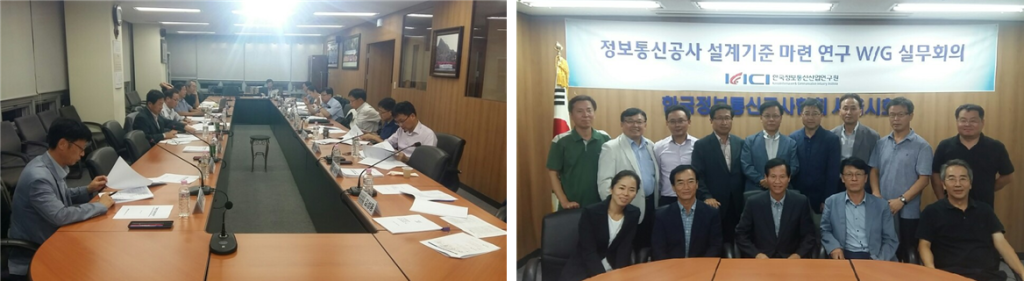 [연구원소식] 2016년 정보통신 공사 설계기준 마련 연구 제1차 W/G회의 개최가. 일 시 : 2016.09.30.(금) 19:00 ~ 21:00 나. 장 소 : 한국정보통신공사협회 서울시회 5층 회의실 다. 참석인원 : 연구원 2명, W/G위원 12명 . 한국정보통신기술사회 안치영회장 라. 회의 주요 내용 o 정보통신 공사 설계기준 마련 연구 추진 현황 보고 o 연구범위 및 서술방향, 설계기준 Ver.2(rev.1)검토 및 기타토의
