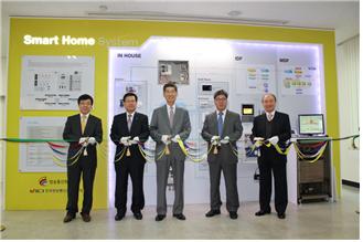 [연구원소식] 2012년도 홈네트워크시스템 체험식 전시관 개관식가. 일시 : 2012년 11월 18일(목) 11:00 ~ 13:00 나. 장소 : 정보통신기능대학(ICT폴리텍대학) 2공학관 FTTH실습실 다. 참석 : 약 20명 o 사업주관 : 방송통신위원회 박장원 서기관 o 수행기관 : 연구원장외 3명, 자문위원회 위원장 o 시 공 사 : ㈜티씨엔코 시공관계자 3명 o 활용기관 : 기능대학장외 교직원 10명 라. 주