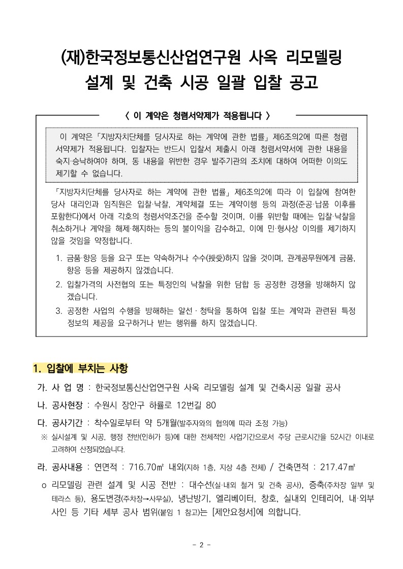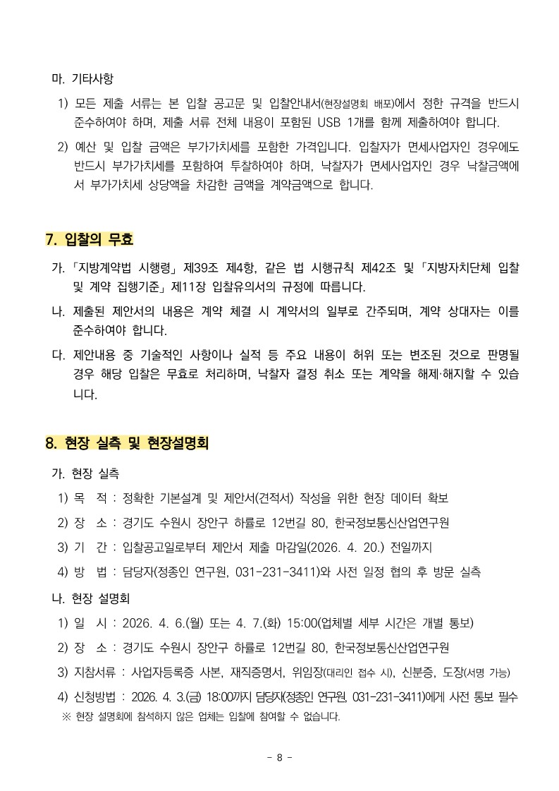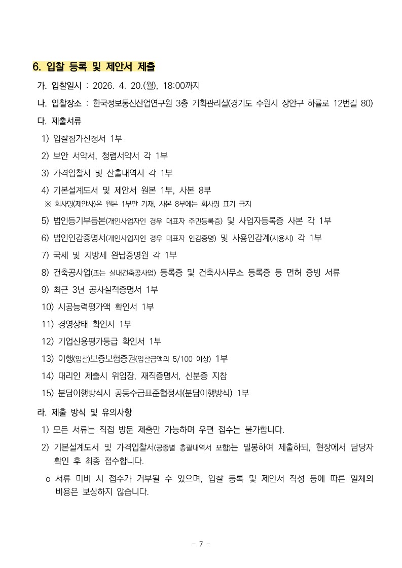 ※ 입찰에 참여하고자 하는 업체는 공고문 및 제안요청서의 내용을 충분히 검토하신 후 제안서를