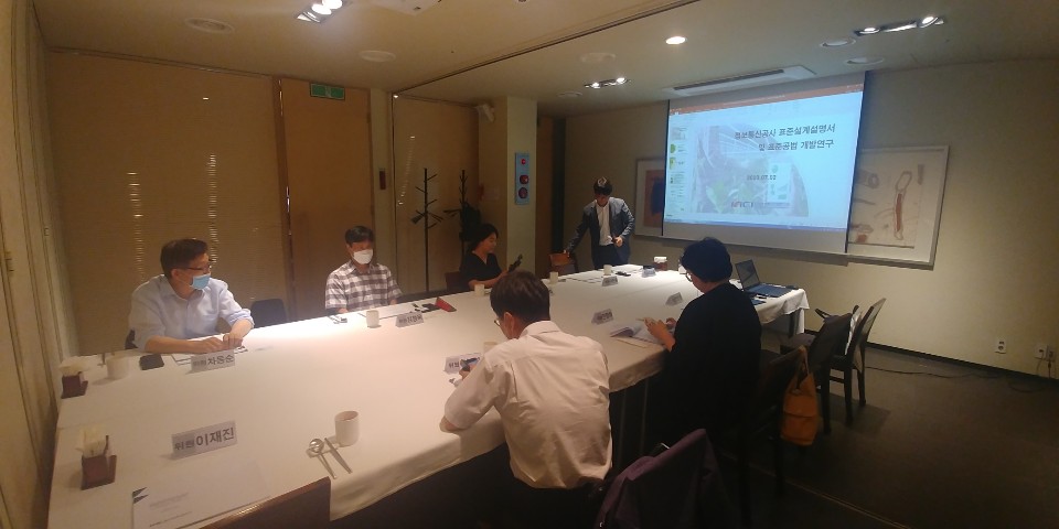 [연구원소식] 「2020년 제1차 표준설계설명서·공법 전문가 자문위원회」개최(2020.7.31)가. 일 시 : 2020. 07. 31.(금) 11:00 나. 장 소 : 시청역 컨퍼런스하우스달개비 다. 참 석 자 : 전문가 자문위원 10명, 연구원 3명 라. 회의 주요내용 o 정보통신공사 표준설계설명서·공법 개발연구 추진 현황 소개 및 보고 o 표준설계설명서·공법연구 결과 검토 및 보완사항 의견수렴 o 기타토의