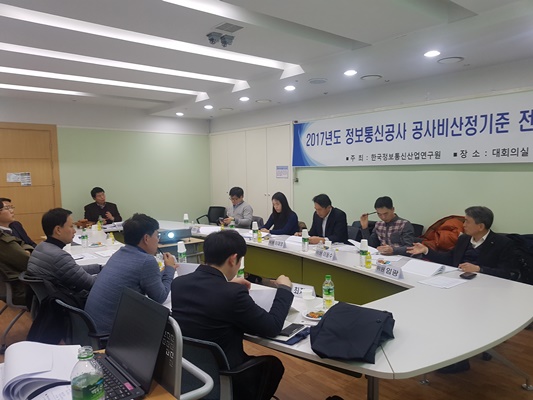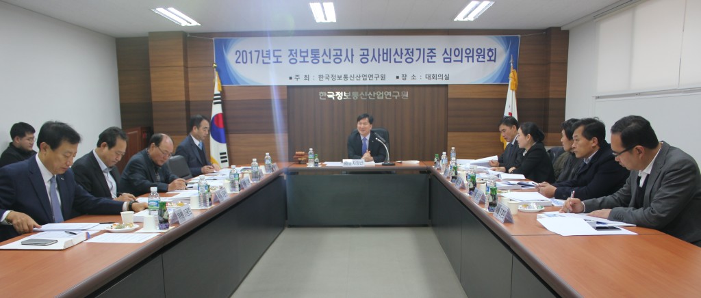 [연구원소식] 2017년도 제3차 정보통신공사 공사비산정기준 전문위원회 회의 개최가. 일 자 : 2017. 12. 1(금) 나. 장 소 : 서울역 KTX1 회의실 다. 참 석 : 전문위원회 위원 11명 참석 라. 회의 주요내용 o 2017년도 하반기 표준품셈 제개정(안) 심의 o 전차회의록 확인 및 주요업무보고 o 기타토의 등 ※ 의결사항 o 2017년도 하반기 정보통신공사 표준품셈 제개정 심의(안) – 제정 14개항, 개정 78개항
