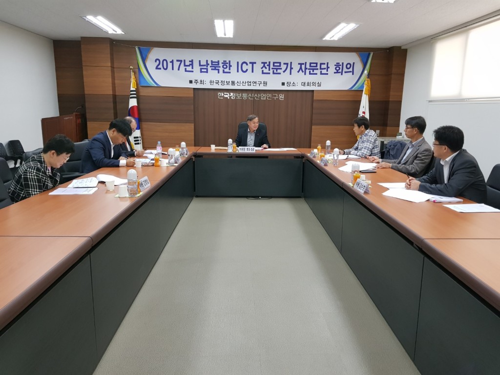 [연구원소식] 2017년 제2차 「남·북한 ICT 전문가 자문단」회의 개최가. 일 시 : 2017. 10. 25(수) 11:00 ~ 12:30 나. 장 소 : 연구원 1층 대회의실 다. 참 석 : 남북 ICT 전문가 자문단 위원 7명 라. 주요내용 o 남북한 정보통신공사 용어 비교 연구 추진 현황 보고 o 남북 정보통신공사 용어 비교(안) 자문 o 기타토의 등