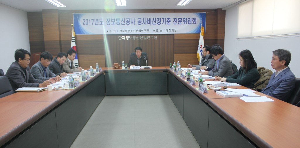 [연구원소식] 2017년도 제2차 정보통신공사 표준시장단가 전문가자문단 회의 개최가. 일 자 : 2017. 11. 9(목) 나. 장 소 : 연구원 1층 대회의실 다. 참 석 : 전문가자문단 위원 9명 참석 라. 회의 주요내용 o 2017년도 하반기 표준시장단가 심의 o 전차회의록 확인 및 주요업무보고 o 기타토의 등 ※ 의결사항 o 2017년도 하반기 정보통신공사 표준시장단가 심의(안) – 표준시장단가 1,215개 공종 – 구내