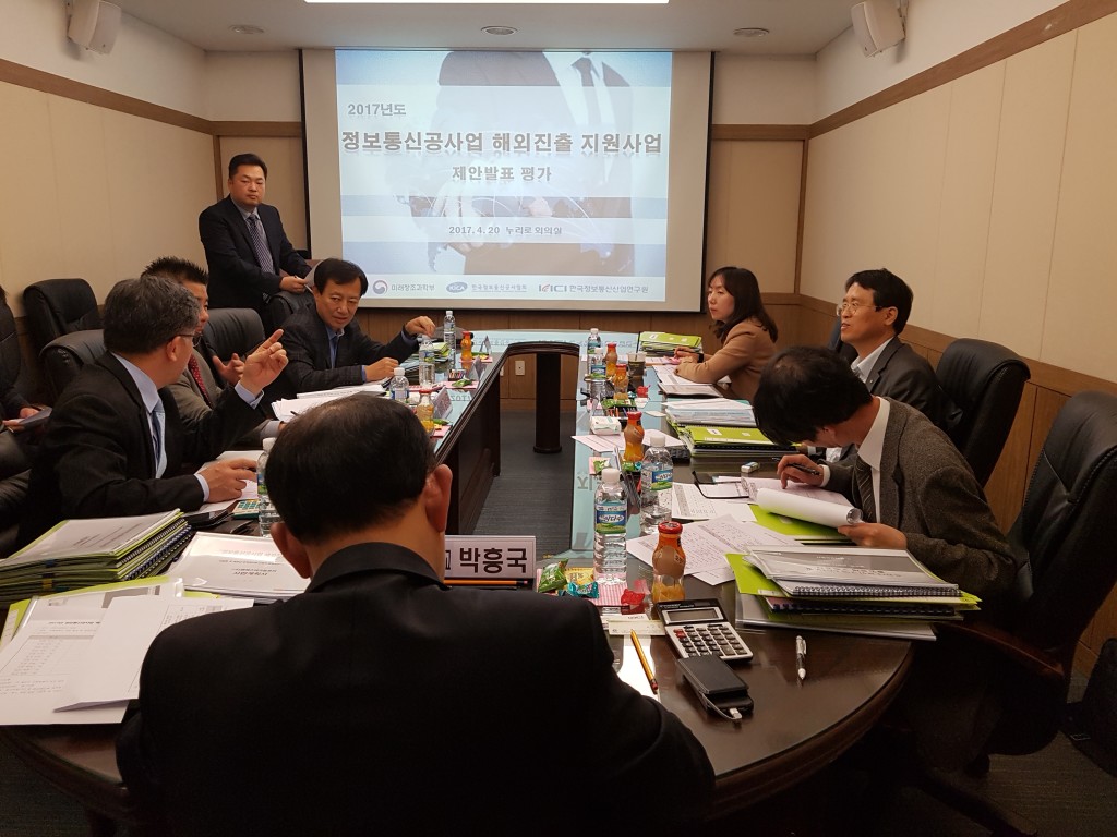 [연구원소식] 2017년 정보통신공사업 해외진출 지원사업 제안발표 평가(2017.4.20)가. 일 자 : 2017. 4. 20(목) 14:00 ~18:00 나. 장소 : 영등포역 누리로 회의실 다. 참석 : 평가위원 7명, 지원사업 신청기업 등 라. 주요내용 o 정보통신공사업 해외진출 지원사업 신청기업 제안발표 및 질의응답 o 신청기업 평가 및 지원대상 선정
