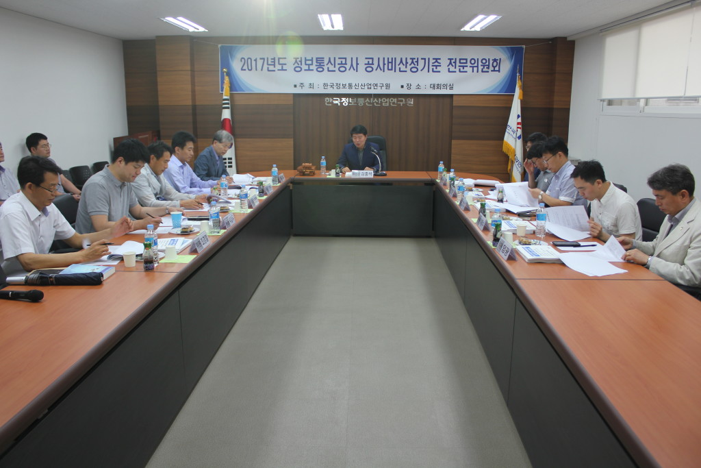 [연구원소식] 2017년도 제1차 정보통신공사 공사비산정기준 전문위원회 회의 개최가. 일 자 : 2017. 6. 9(금) 나. 장 소 : 연구원 1층 대회의실 다. 참 석 : 전문위원회 위원 11명 참석 라. 회의 주요내용 o 2017년도 상반기 표준시장단가 및 표준품셈 심의 o 전차회의록 확인 및 주요업무보고 o 기타토의 등 ※ 의결사항 o 2017년도 상반기 정보통신공사 표준시장단가 심의(안) – 표준시장단가 1,330개 공