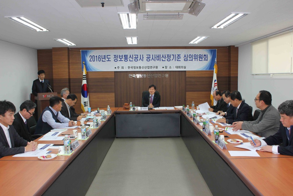[연구원소식] 2016년도 제2차 정보통신공사 공사비산정기준 심의위원회 개최가. 일 자 : 2016. 11. 11(금) 나. 장 소 : 연구원 1층 대회의실 다. 참 석 : 심의위원회 위원 11명 참석 라. 회의 주요내용 o 2016년도 하반기 표준시장단가 심의 o 전차회의록 확인 및 주요업무보고 o 기타토의 등 ※ 의결사항 o 2016년도 하반기 정보통신공사 표준시장단가 심의(안) – 표준시장단가 1,325개 공종 – 구내