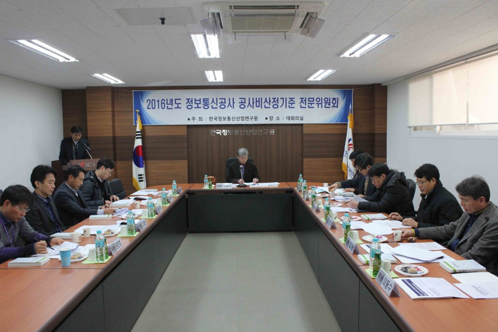 [연구원소식] 2016년도 제2차 정보통신공사 공사비산정기준 전문위원회 개최가. 일 자 : 2016. 11. 4(금) 나. 장 소 : 연구원 1층 대회의실 다. 참 석 : 전문위원회 위원 10명 참석 라. 회의 주요내용 o 2016년도 하반기 표준시장단가 심의 o 전차회의록 확인 및 주요업무보고 o 기타토의 등 ※ 의결사항 o 2016년도 하반기 정보통신공사 표준시장단가 심의(안) – 표준시장단가 1,325개 공종 – 구내통