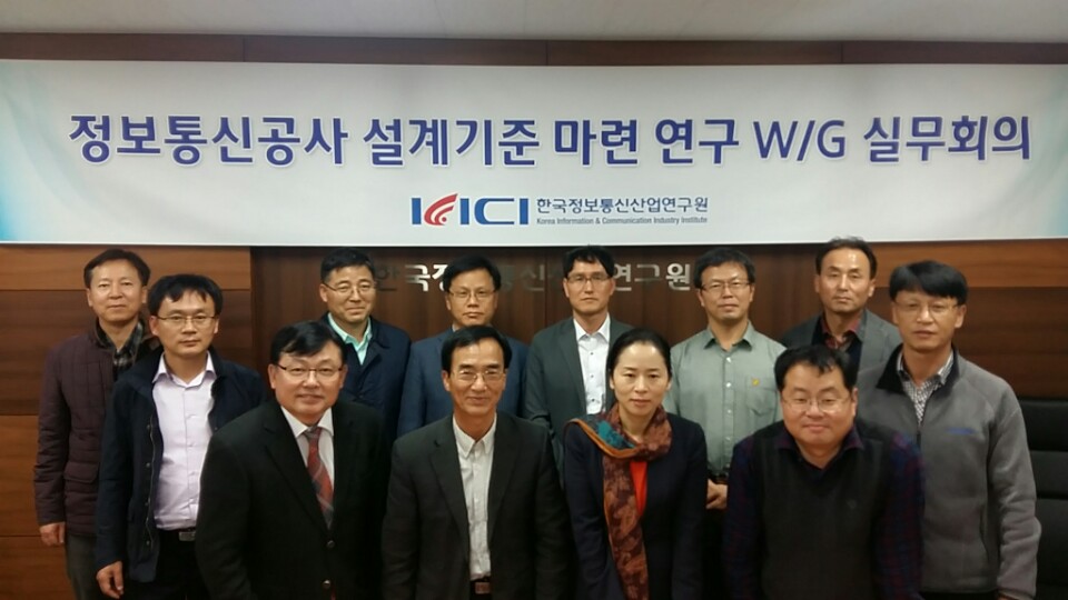 [연구원소식] 2016년 정보통신 공사 설계기준 마련 연구 제2차 W/G회의 개최가. 일 시 : 2016.10.28.(금) 19:00 ~ 21:00 나. 장 소 : 한국정보통신산업연구원 다. 참 석 인 원 : 연구원 2명, W/G위원 12명 라. 회의 주요 내용 o 정보통신 공사 설계기준 마련 연구 추진 현황 보고 o 연구범위 및 서술방향, 설계기준 Ver.1(rev.2)검토 및 기타토의