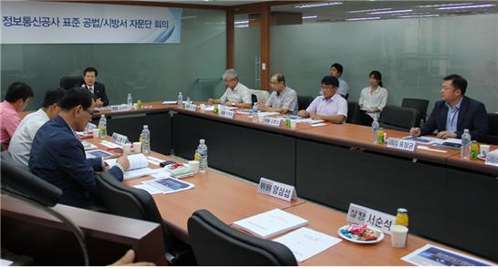 [연구원소식] 2012년도 제2차 정보통신공사 표준시방서·공법 전문가 자문단회의 개최가. 일시 : 2012년 11월 26일(월) 16:00 ~ 18:00나. 장소 : 연구원 대회의실다. 참석 : 자문위원회 7명 참석, 연구원 5명 배석※ 전문가자문위원 : 김윤헌 위원장, 조평동, 김남, 엄삼섭, 박수영, 임은주, 임광 위원라. 회의 주요내용o 주요업무 보고o 공종분류체계(안) 및 시방서 개발(안) 30종 토의o 공법 개발(안) 3종 토