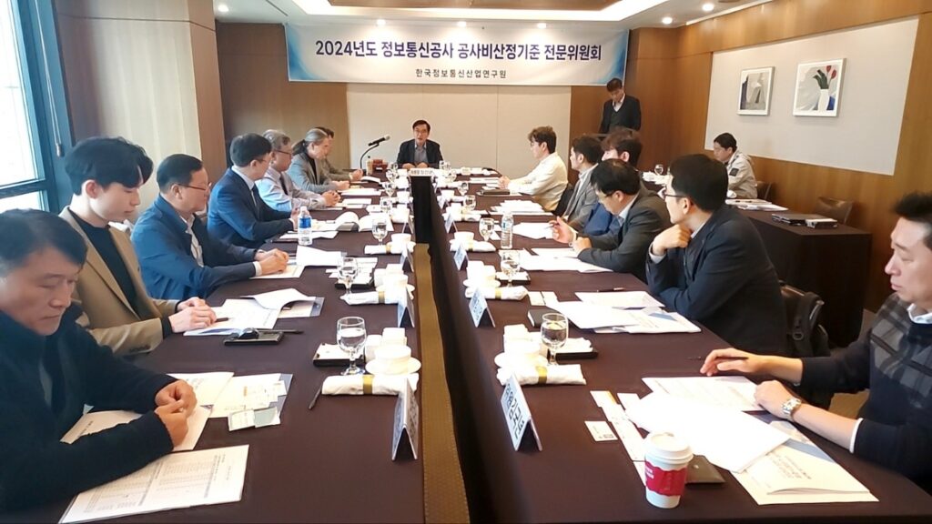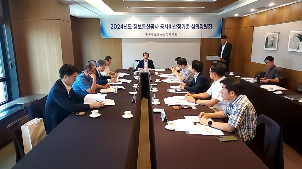 [연구원소식] 2024년도 제1차 「정보통신공사 공사비산정기준 심의위원회」 회의 개최(24.06.19)가. 일 시 : 2024. 6. 19.(수), 11:00 나. 장 소 : 한국프레스센터, 19층 회의실 다. 참 석 : 표준시장단가 심의위원회 위원 10명 라. 주요 내용 o ’24년도 하반기 적용 정보통신공사 표준시장단가 검토ㆍ심의