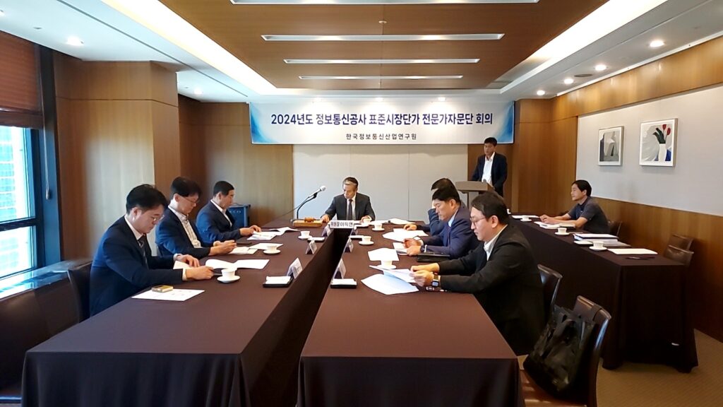 [연구원소식] 2024년도 제1차 「정보통신공사 표준시장단가 전문가자문단」 회의 개최(24.05.28)가. 일 시 : 2024. 5. 28(화), 11:00 나. 장 소 : 한국프레스센터, 19층 회의실 다. 참 석 : 표준시장단가 전문가자문단 위원 7명 라. 주요 내용 o ‘24년도 하반기 적용 정보통신공사 표준시장단가 검토ㆍ심의