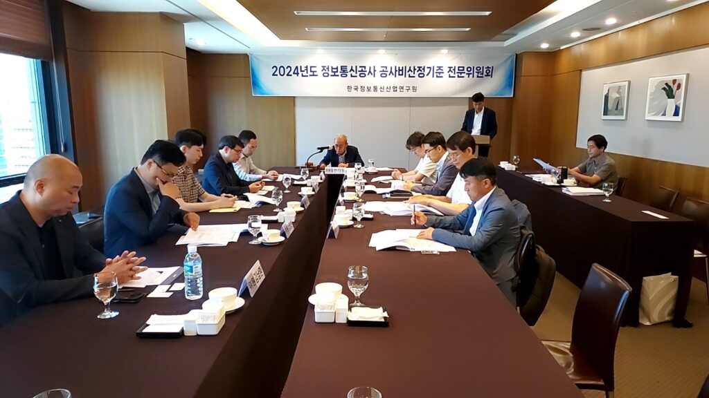 [연구원소식] 2024년도 제1차 「정보통신공사 공사비산정기준 전문위원회」 회의 개최(24.06.04)가. 일 시 : 2024. 6. 4.(화), 10:30 나. 장 소 : 한국프레스센터, 19층 회의실 다. 참 석 : 표준시장단가 전문위원회 위원 10명 라. 주요 내용 o ‘24년도 하반기 적용 정보통신공사 표준시장단가 검토ㆍ심의