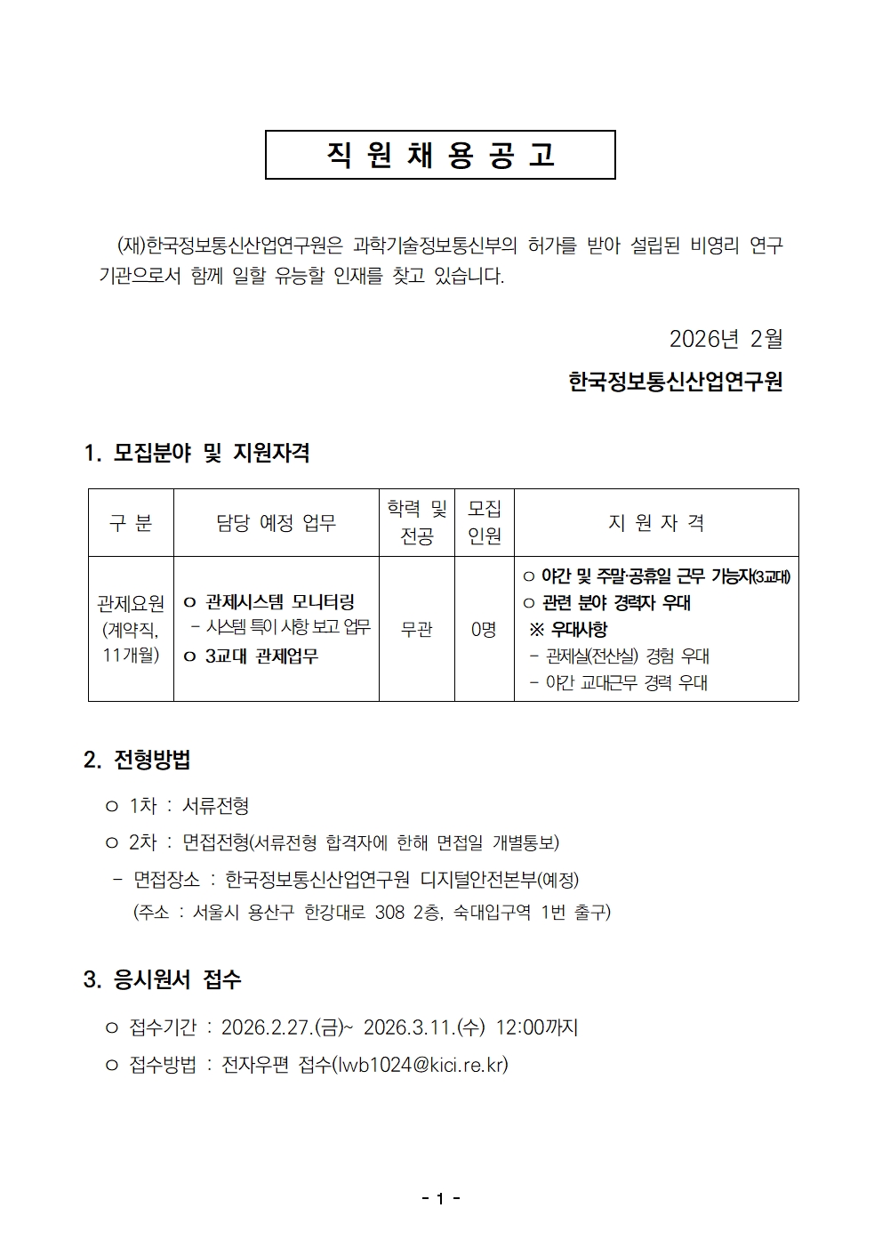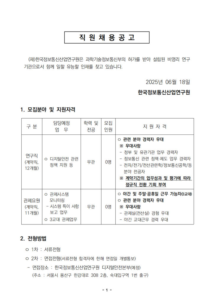 [채용공고] 마감 2025년 상반기 연구원 및 관제요원 모집 공고 안내(2025.4.13까지) -