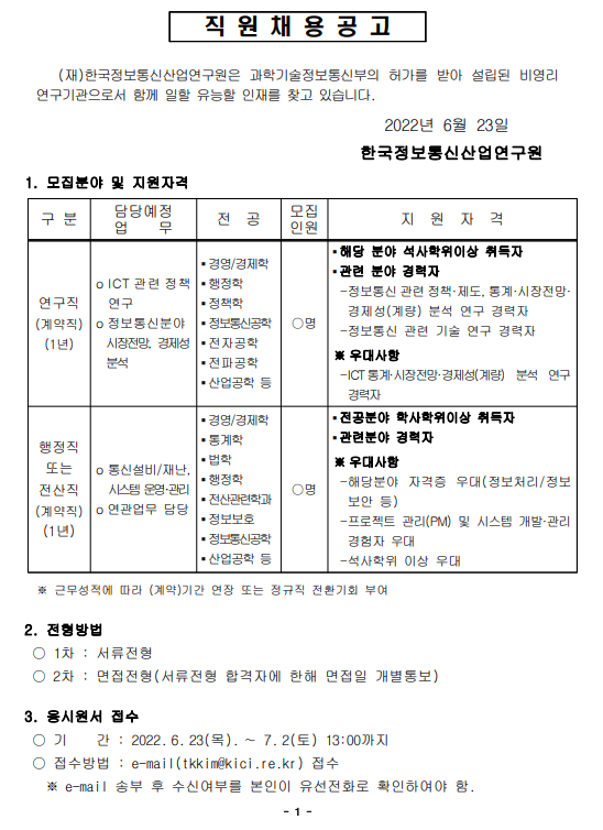 [입찰/채용] 마감 [마감] 2022년 직원(계약직) 2차 모집 공고문(2022.7.2까지) -